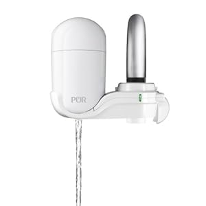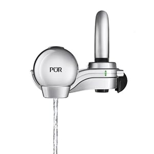 From PUR, this Three-Stage Vertical Mount Faucet Water Filter options a chrome style and clicks onto any normal faucet--no tools needed. every filter is capable of cleansing up to one hundred gallons of water (lasting 2 to a few months, on average). The filter's purification system keeps sediment, chlorine, lead, trace prescribed drugs, microbial cysts, and alternative pollutants from reaching your drinking glass. within the final stage, water is filtered over natural minerals for a crisp style. The filter swivels 360 degrees and features a convenient built-in replacement indicator.